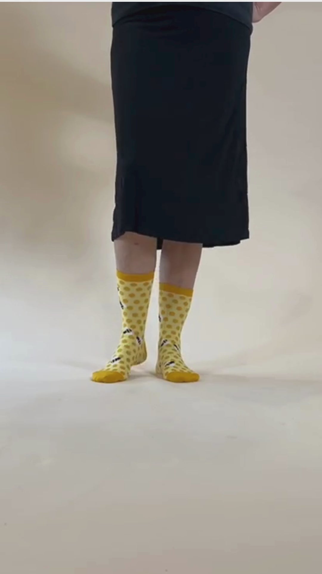Compostable PackagingBees are just awesome! A great yellow crew sock with beautiful colourful yellow and black bees on a honey comb design.