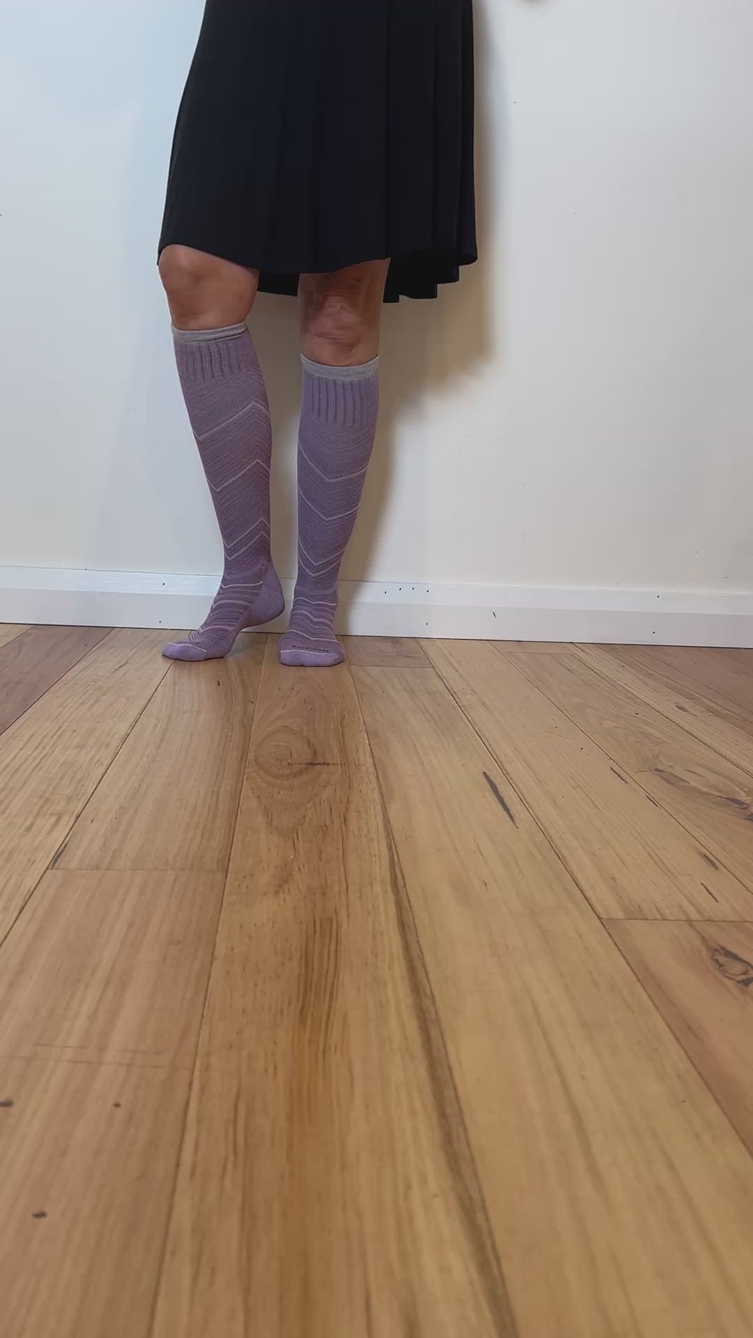 Compostable PackagingA merino/bamboo blend knee high sock with moderate graduated compression (15-20mmHg) which is ideal for sitting and standing as well as recovering. These compression socks might add extra comfort for travelling. Ideal for people who spend a lot of time on their feet. The materials used result in a moisture wicking and odour controlling sock.